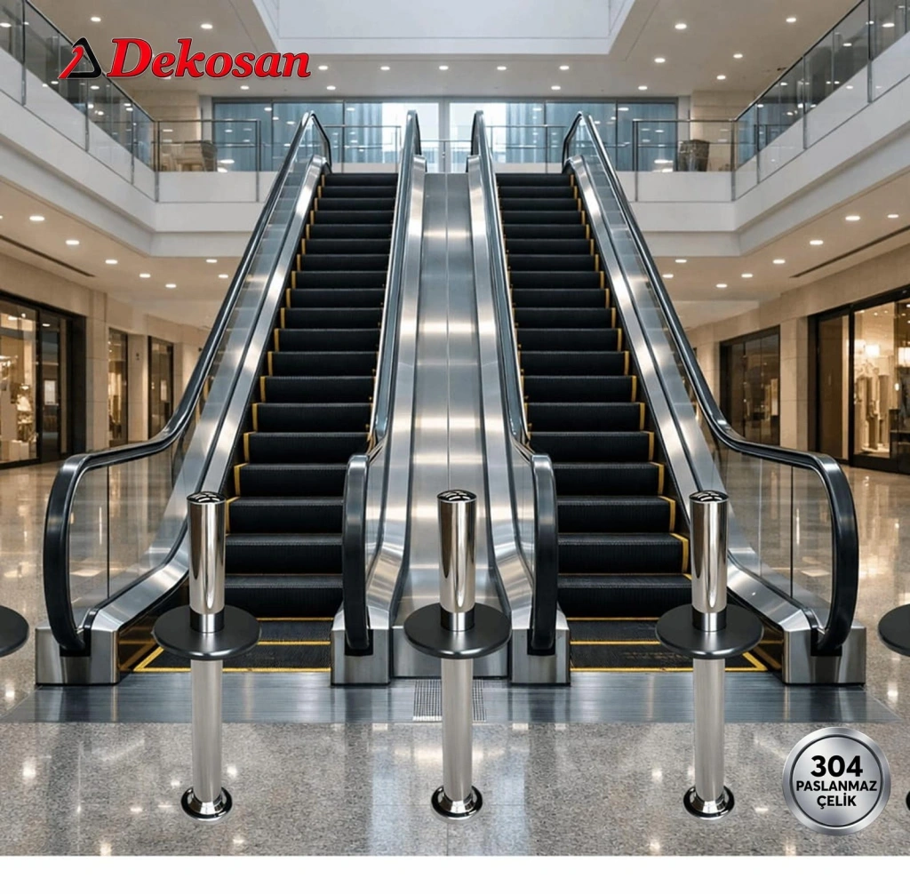 Montaj kolaylığı sunan delikli flanş yapısı, zemine sağlam sabitleme imkânı sağlarken, flanşı gizleyen paslanmaz kapak ürüne şık ve profesyonel bir görünüm kazandırır. AVM’ler, havaalanları, oteller, iş merkezleri ve toplu kullanım alanları için ideal bir çözümdür.